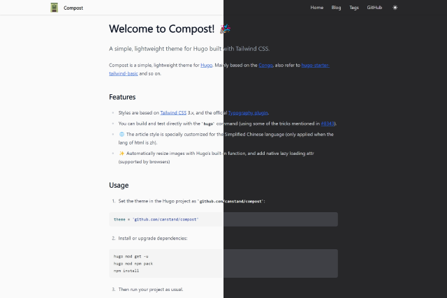 A simple, lightweight theme for Hugo built with Tailwind CSS.